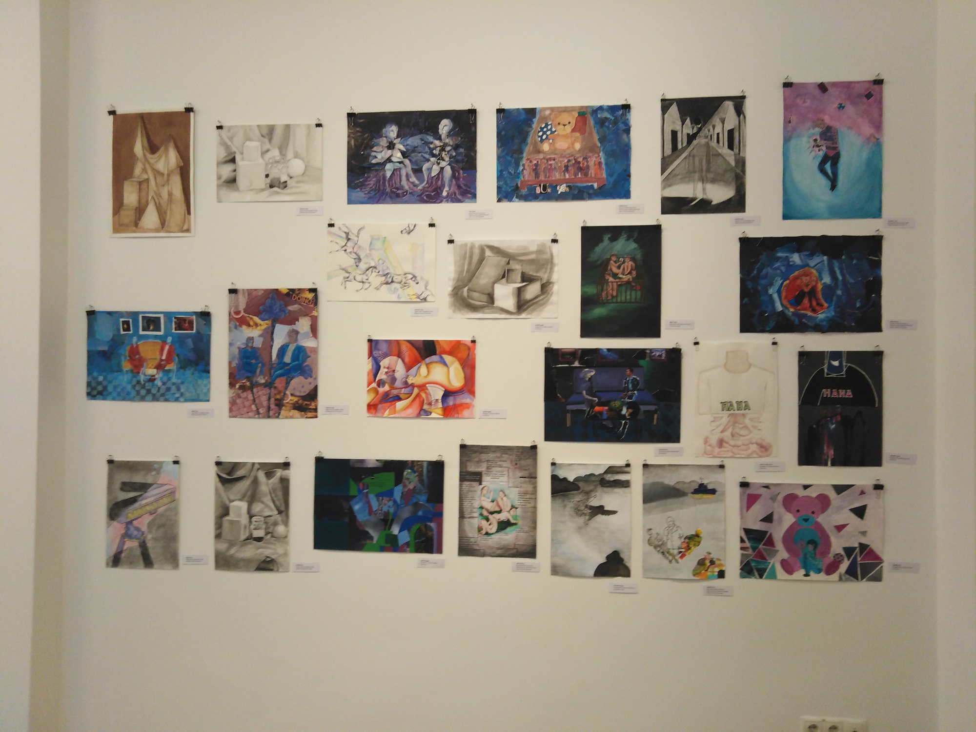 Szélsőséges hangulatokat kelt Nagy Sára Julianna Georg Scholz Hirdetőoszlopos önarckép-ére készített parafrázisa: a jelen világunkra vonatkozó, erős üzeneteket hordozó graffitik kerültek a képén ábrázolt falakra, de mindezzel együtt híres graffitiművészeket is megidézett, mint Bansky-t vagy az ír Karma-t. Szabó Eszter Ágnes falvédője, a Nagymamám, Zalai Imréné találkozása David Bowie-val az egyik legnépszerűbb magyar kortárs képzőművészeti alkotás. Tökéletesen alkalmas arra, hogy az ötletét felhasználva egymástól távoli világokból érkező embereket rendeljünk egymás mellé. Ez történik a fiatal művésznő képén is: Monet és Munkácsy találkozik egymással. A kép az eltérő karakterű tájakkal a művészek munkáját meghatározó környezetre helyezi a hangsúlyt. S végül a 3. kategória alkotásai közül említek meg egyet. A 3. kategória a döntőjében, a parafrázisokat kollázstechnikával és bizonyos színharmóniák, színegyüttállások érvényesítésével kellett elkészíteniük – szóval volt kihívás itt is bőven. Az egyik forrásmű az orosz Zsilinszkijnek a Ludwig házaspárról készített kettősportréja volt. Bognár Angéla látványos parafrázisában ugyan látjuk a nagy műgyűjtő házaspárt szerényen a háttérbe húzódva, ám az alkotásában inkább a modern absztrakt képi világ s vele a művészet kerül kiemelésre. S milyen jól tette, hiszen ma is a művészet hozott össze bennünket.